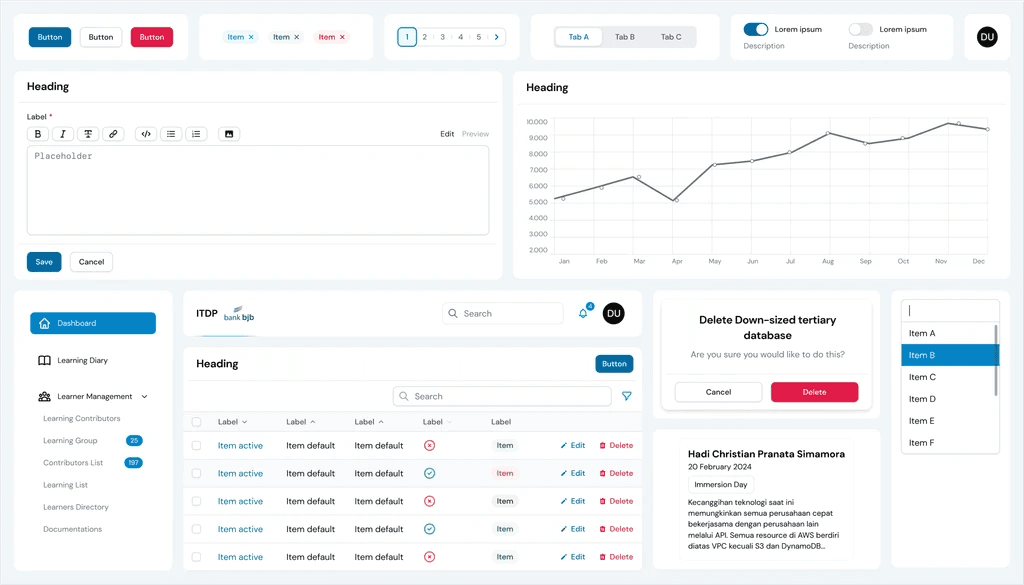 Again ITDP BJB is a platform that is used by several batches or groups, so I use the atomic design methodology by Bradfost where I create a design guide from the smallest one and the components that are made are easy to customize and can be reused.