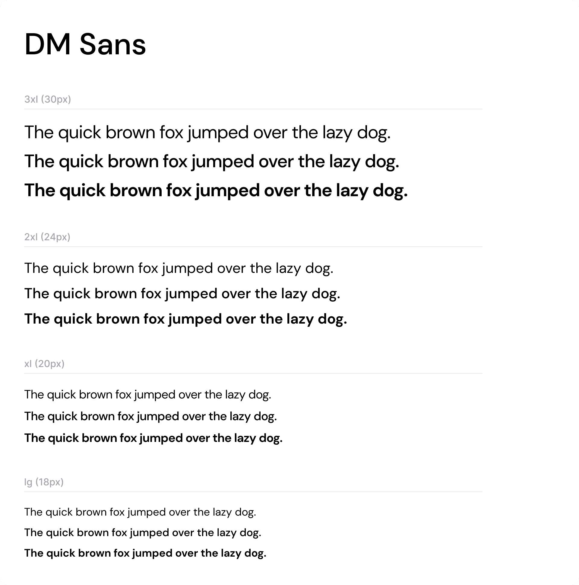 Take small steps to find Primary font, the i found the fit one is DM Sans font from Google Fonts