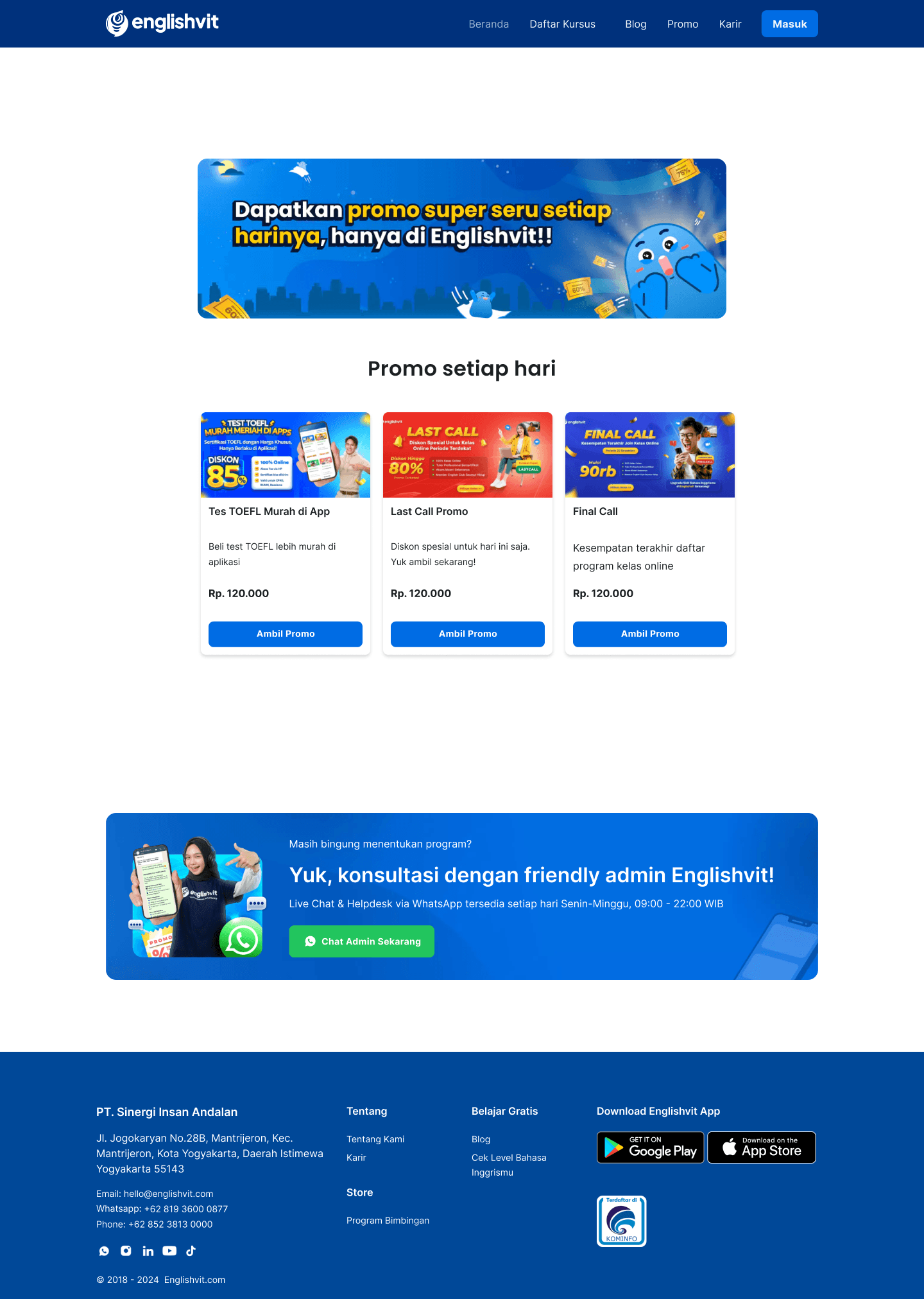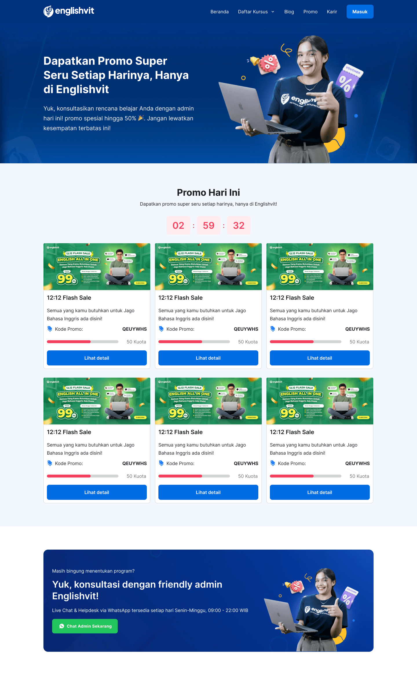 As a Product Manager, I led the project to enhance the Englishvit website, including redesigning the promo page to improve objective was to create a more engaging and efficient user experience to boost user engagement, maximize conversions, and strengthen the Englishvit brand image.